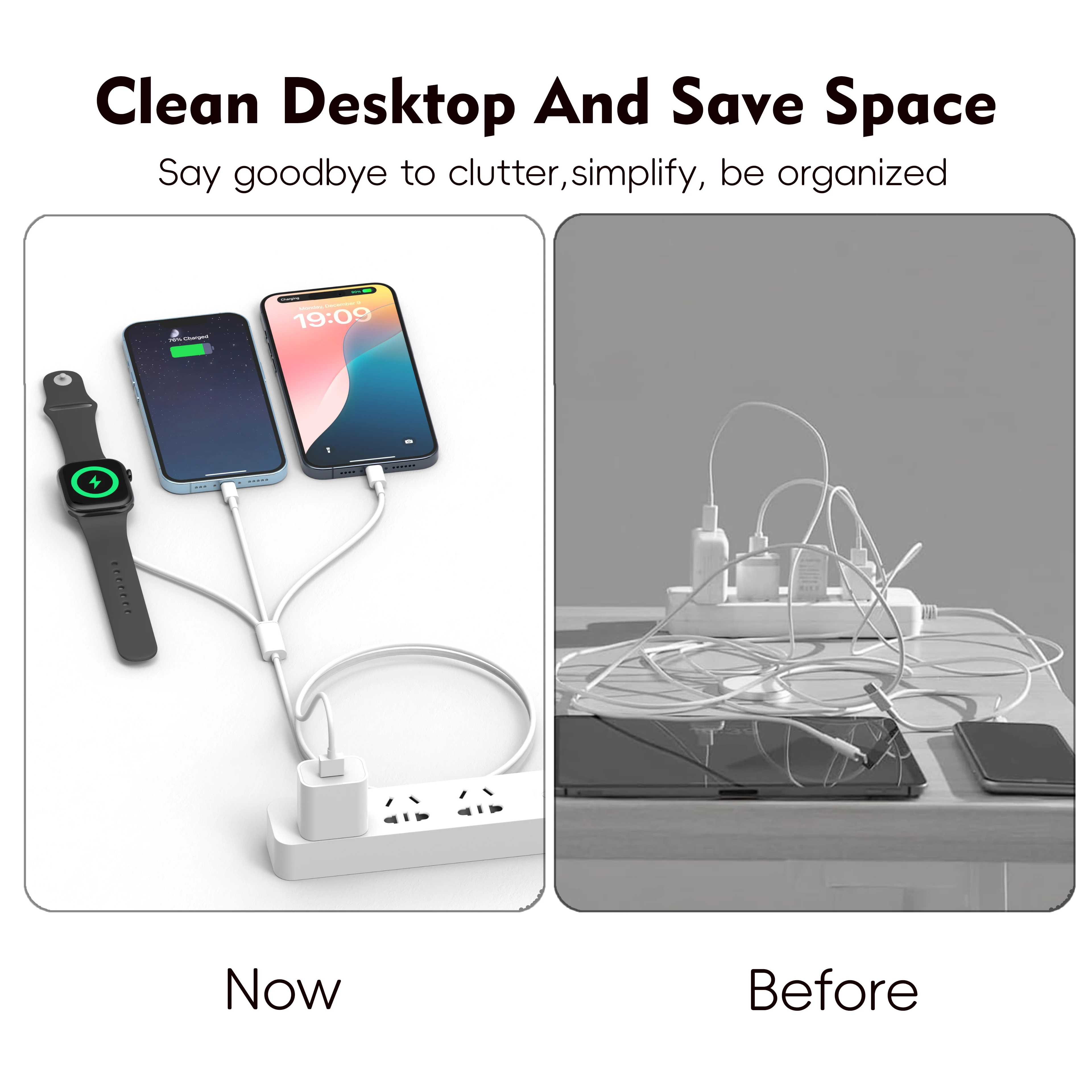Apple‑ecosystem focused compatibility: Specifically designed to work with iPhone models, Apple Watch (including S and Ultra series), and AirPods, simplifying your charging routine in one elegant cable.