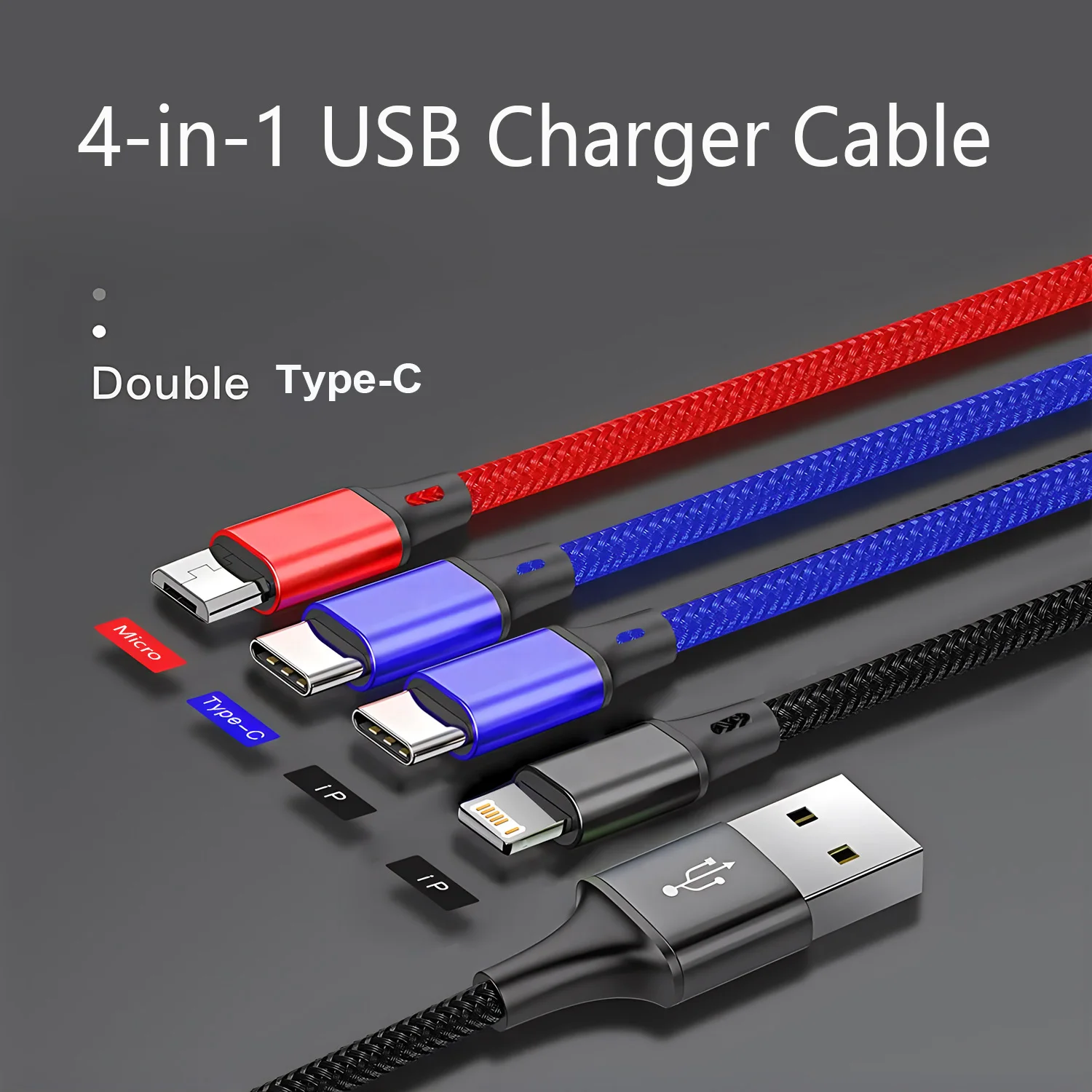 4 in 1 Multi Charger Cable designed to power your day with a single, versatile solution. Built for speed, durability, and broad compatibility, this braided cable keeps your devices charged—from the newest iPhone 15 to a wide range of Android and Huawei devices—without the clutter of multiple cords.