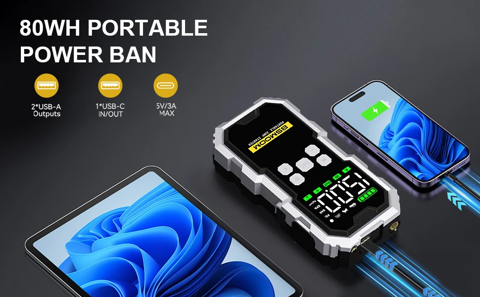 feature 1: Car Jump Starter & Air Pump 150PSI