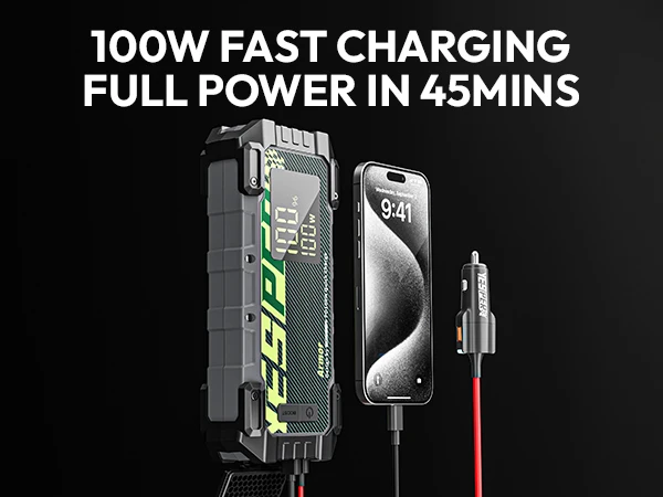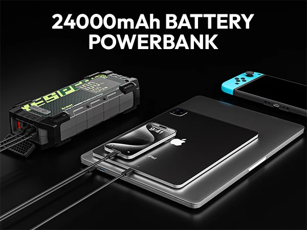 Dual Functionality: Acts as both a jump starter and a portable power bank for all your devices, making it a versatile companion for travel and emergencies.